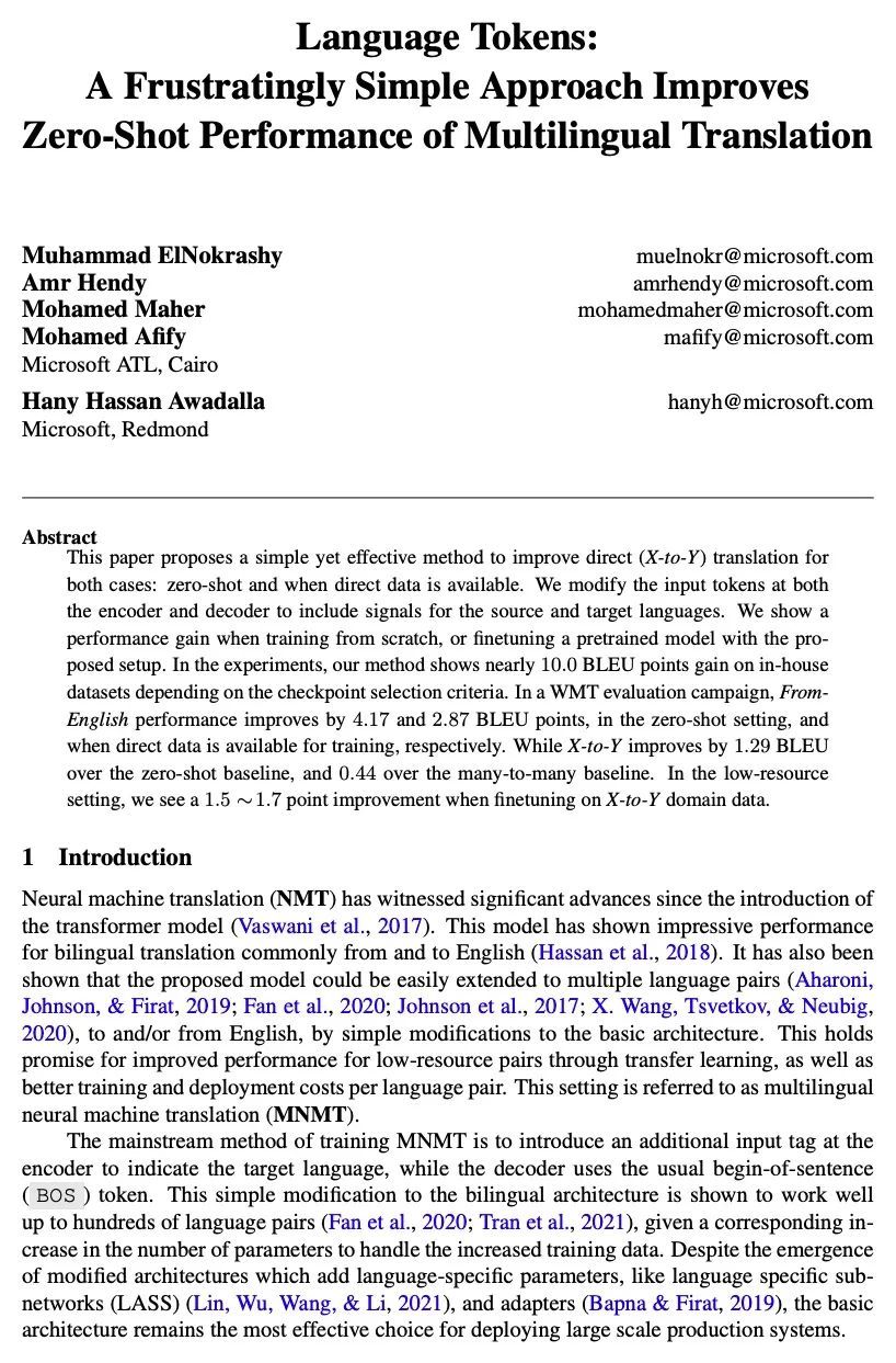 [CL] Language Tokens: A Frustratingly Simple Approach Improves Zero-Shot Performance of Multilingual Translation