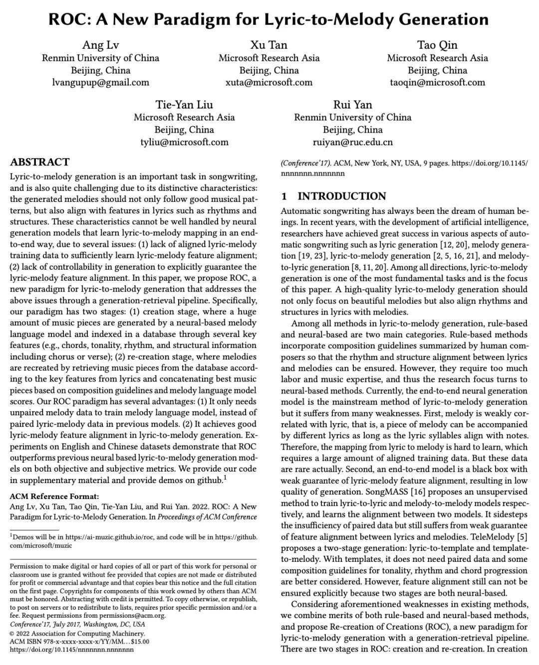 [AS] ROC: A New Paradigm for Lyric-to-Melody Generation
