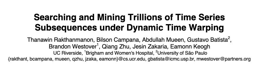 获奖论文:Searching and Mining Trillions of Time Series Subsequences under Dynamic Time Warping