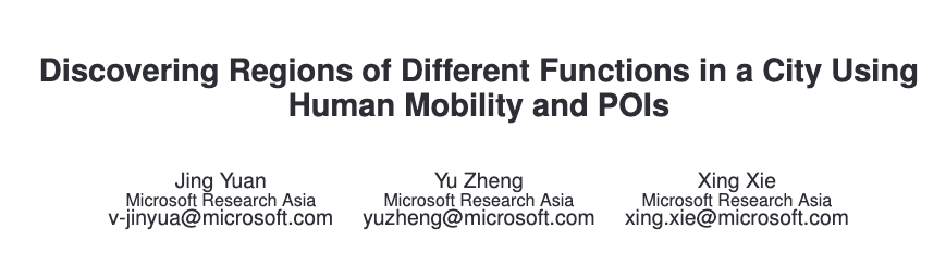 获奖论文:Discovering Regions of Different Functions in a City Using Human Mobility and POls