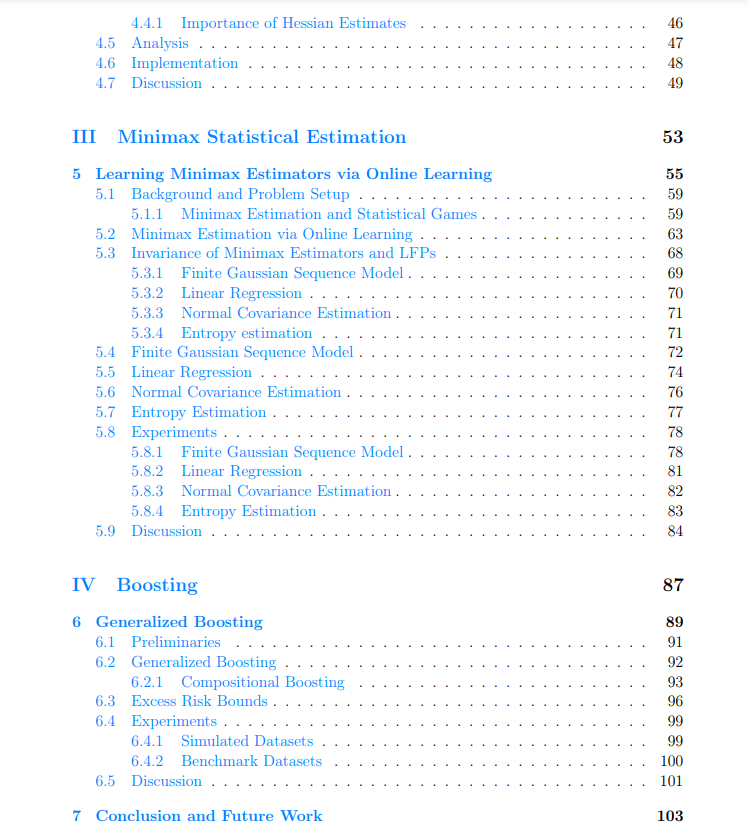 统计博弈论是一个统一的分析和算法框架,支撑着所有这些古典和现代的发展。本文旨在奠定统计博弈论的基础,以解决上述(以及更多)统计问题。虽然我们在这篇论文的主要焦点是极大极小统计估计和增强,这里开发的工具和技术是广泛适用的,并有助于研究其他问题,如鲁棒学习和对抗密度估计。我们在极大极小统计估计方面的工作旨在为构造极大极小最优估计提供有效的算法技术。这些技术自动化了设计极大极小估计器的过程,并可以帮助统计人员构建这些估计器。对于各种基本问题,如均值估计和熵估计,我们的极大极小估计算法匹配,如果不是击败,由统计学家设计的现有极大极小估计的性能。我们对boosting的研究旨在提高它的性能,使其更接近神经网络的性能。为此,我们开发了一个广义提升框架,该框架使用比传统提升中考虑的加性组合更复杂的聚合形式来组合弱分类器。我们的广义boosting算法比传统的boosting算法具有更好的性能,性能接近于神经网络。
