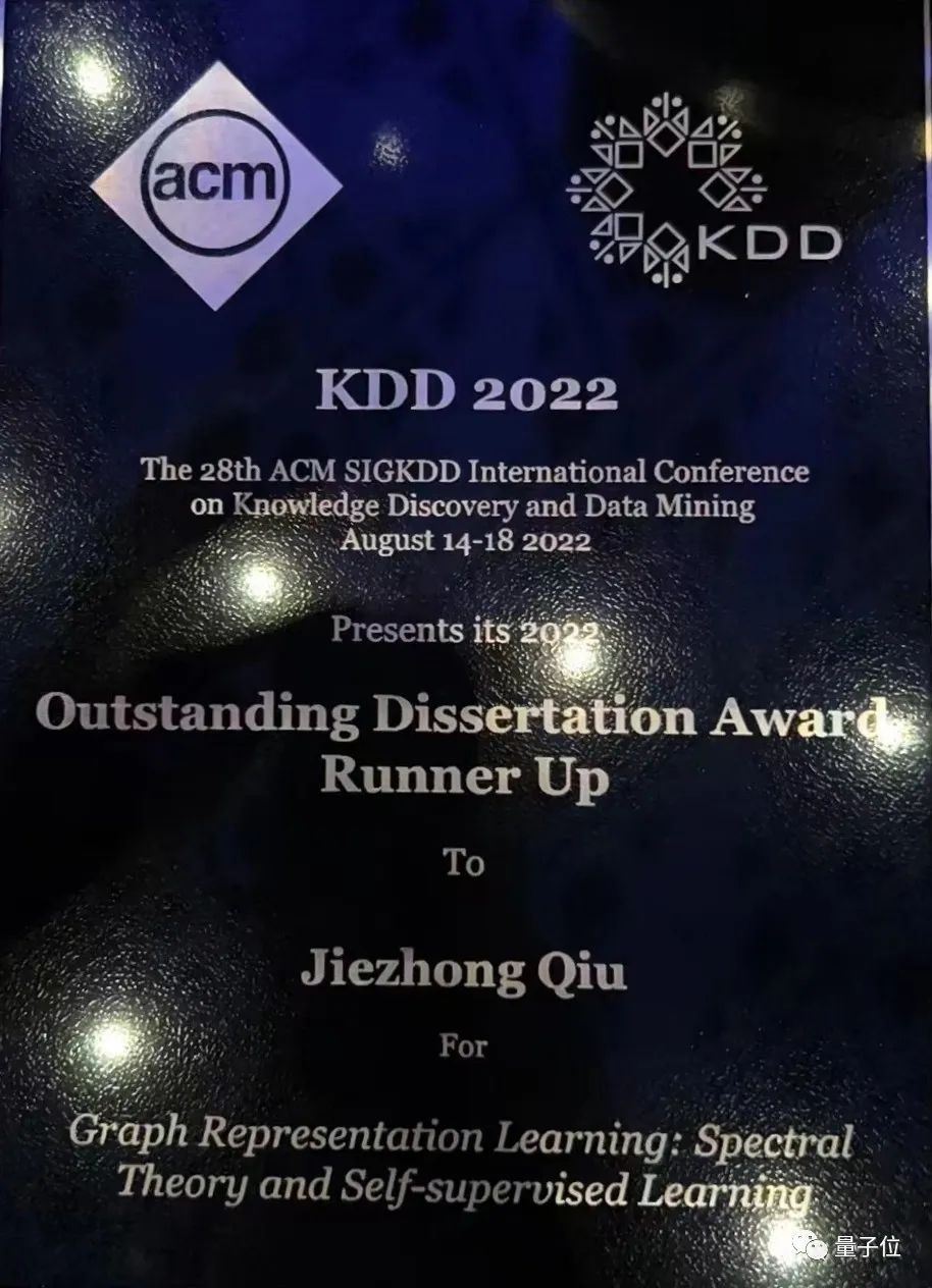 今年的KDD最佳博士论文奖RUNNER UP,由毕业于清华大学的裘捷中博士斩获。