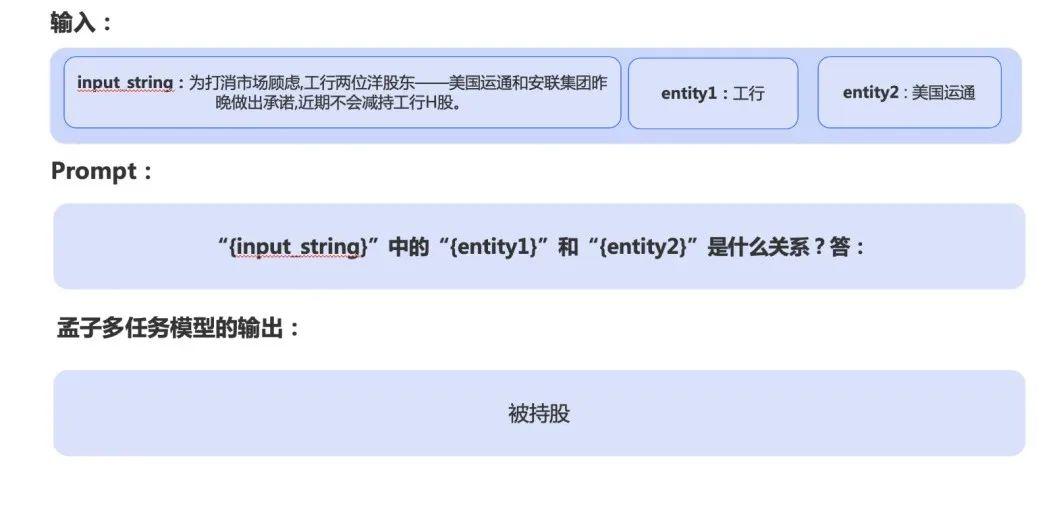 下图展示了 Mengzi-T5-base-MT 模型在金融实体关系抽取任务的示例: