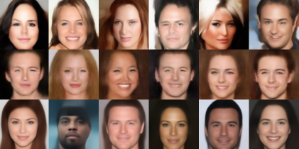 图注:cold diffusion 的生成图像。第一行使用变形方式变换,第二行使用修复方式变换,第三行使用超分辨率变换方式。