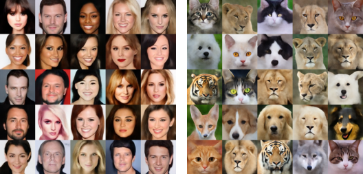 图注:对128 × 128 CelebA and AFHQ 数据集使用 cold diffusion 的模糊方式变换生成样本示例