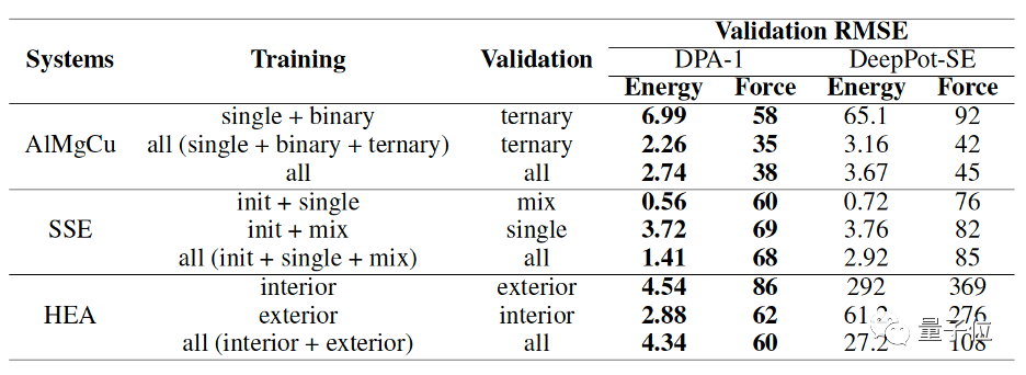 在迁移性测试中,研究人员有意将不同训练集划分成多个子集,且每个子集的组分、构型都有较大差异。