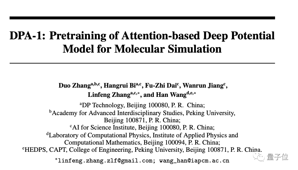 DPA-1,中国团队深势科技以及北京科学智能研究院等机构打造,能覆盖元素周期表大多数常见元素。