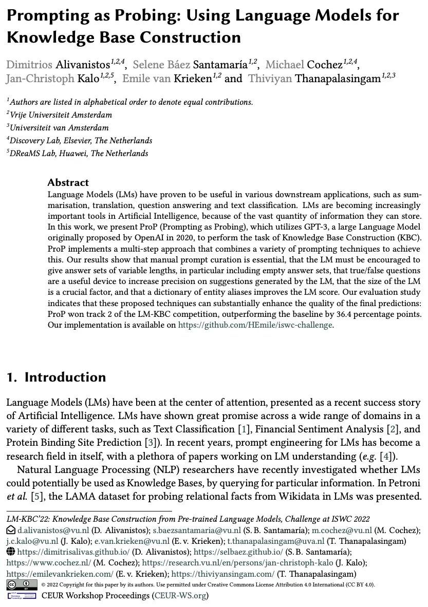D Alivanistos, S B Santamaría, M Cochez, J Kalo, E v Krieken, T Thanapalasingam