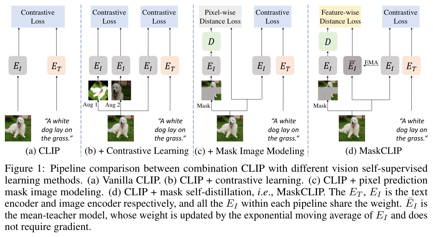 - 我们介绍了对MaskCLIP变体的广泛消融实验,并在数值和视觉上提供深入的分析,以帮助了解建议的掩盖自我验证如何有助于VL对比。