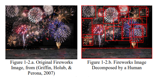 退一步讲,这很可能是一个已知的情况;然而,除了表1-1中的 "烟花 "标签外,其余的顶级分类(得分大于或等于90%)都在不描述图像的类别上,例如 "水"、"光 "或 "自然"。这就是图像分类由于其对它所知道的类/标签的限制而提供了非常狭窄的结果。能够准确地解释或识别这些未知的东西,是目前文献中非常感兴趣的。解决未知数的一个建议是通过应用类比推理(AR),从而通过类比进行推理/学习。