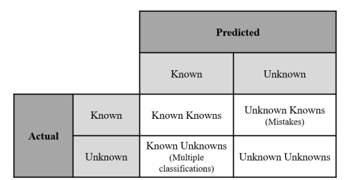 在图1-1的三个类别中,至少有一个部分是已知的,然而,人们对探索如何 "学习 "未知的未知数有很大的兴趣。未知数的例子是试图识别一个机器学习(ML)算法以前没有训练过的物体。探索这一领域的动机包括自动化系统的不断增长,以及无法产生能够在已知-未知情况下评估问题的模型数量(Bihl & Talbert, 2020)。