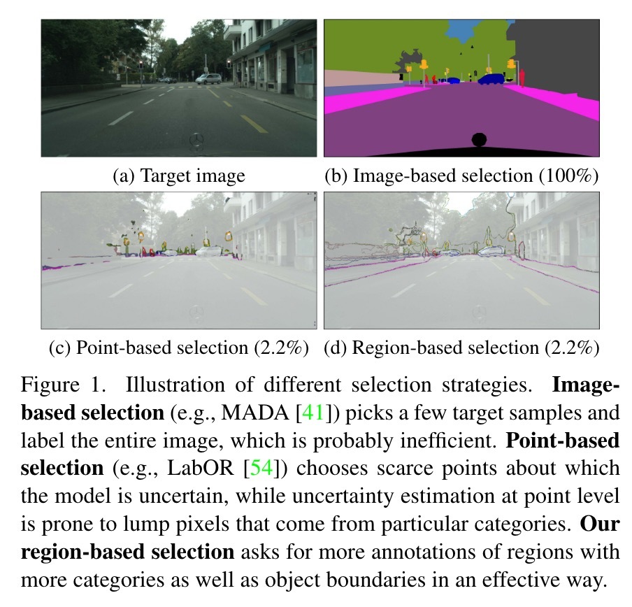 - 我们基于有关语义分割的主动域适应性的先验方法的性能,并发现使用基于图像或基于点的选择策略的方法无效。