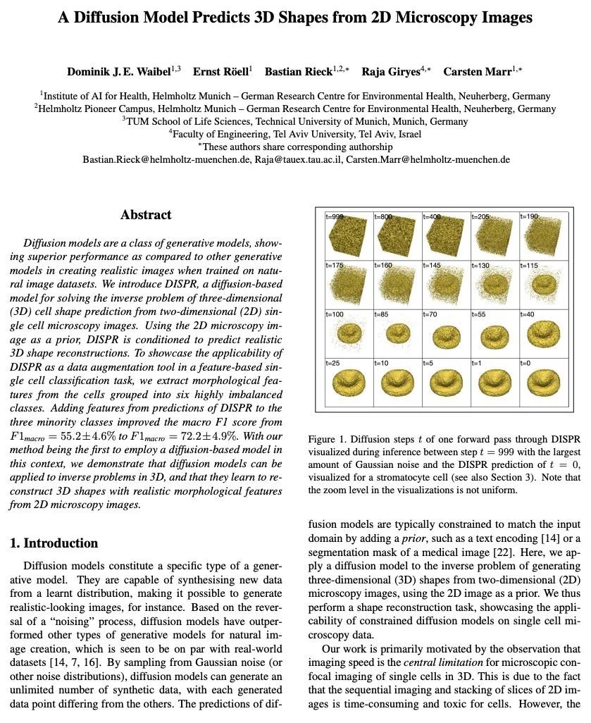 [CV] A Diffusion Model Predicts 3D Shapes from 2D Microscopy Images