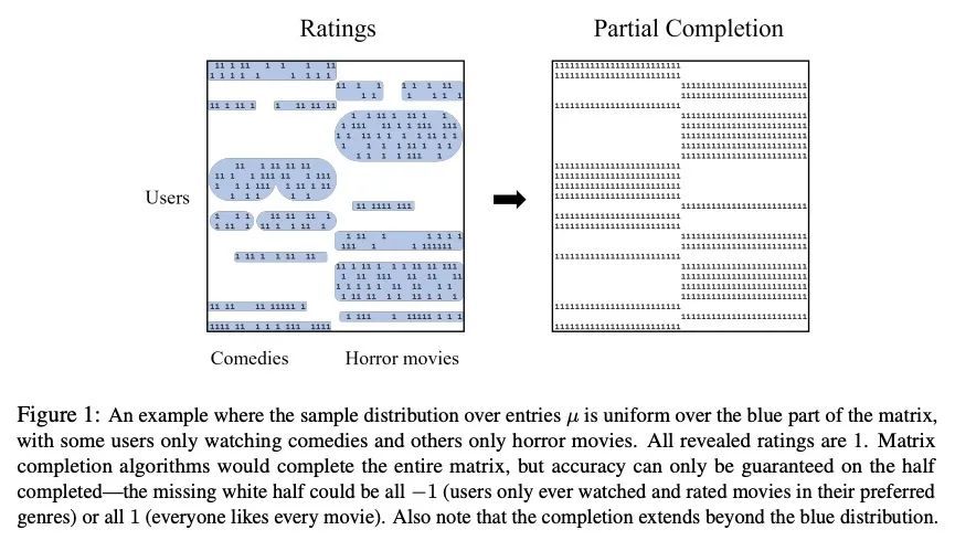 不完全矩阵补全。在矩阵补全问题中,人们希望根据一组被揭示的(可能是包含噪声的)条目来重建一个低秩矩阵。之前的工作考虑补全整个矩阵,在条目分布不均匀的常见情况下,这可能是非常不准确的。本文将不完全矩阵补全问题规范化,其目标是完成一个大的条目子集,或者说补全整个矩阵并指定一个准确的条目子集。有趣的是,即使分布是未知的和任意复杂的,所提出的高效算法也能保证:(a)在所有补全的条目上有很高的准确性,和(b)高覆盖率,这意味着它覆盖的矩阵至少与观察到的分布一样多。
