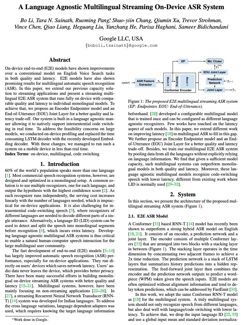 3、[AS] A Language Agnostic Multilingual Streaming On-Device ASR System