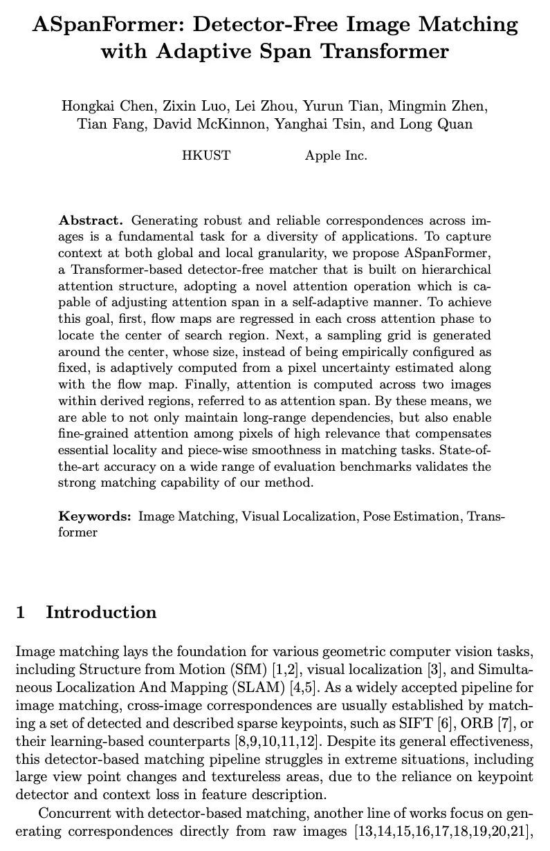 [CV] ASpanFormer: Detector-Free Image Matching with Adaptive Span Transformer