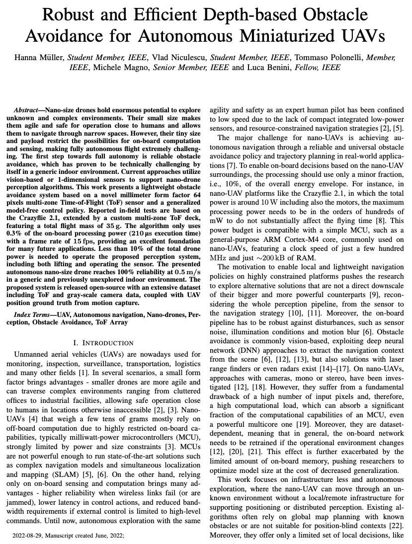 [RO] Robust and Efficient Depth-based Obstacle Avoidance for Autonomous Miniaturized UAVs