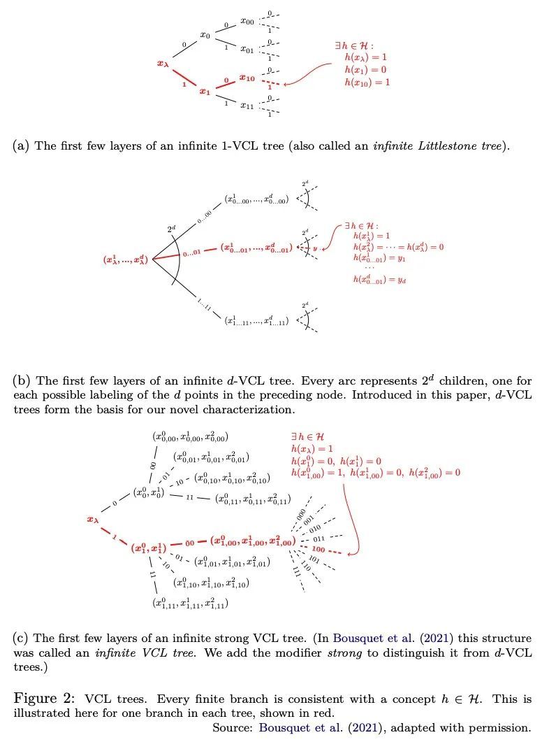 细粒度分布相关学习曲线。学习曲线描绘了一个学习算法的预期误差与标记输入样本数量的函数。它们被机器学习从业者广泛用于衡量算法的性能,但经典的PAC学习理论无法解释其行为。本文提出一种新的组合表征,称为VCL维度,它改进并完善了Bousquet等人的最新成果。表征通过提供细粒度的界对学习曲线的结构进行了新的揭示,并表明对于具有有限VCL的类,衰减率可以分解为只取决于假设类的线性部分和也取决于目标分布的指数部分。特别是,VCL维度的细微差别意味着下界在数量上强于Bousquet等人的下界,在质量上强于经典的"没有免费午餐"下界。VCL表征解决了Antos和Lugosi研究的一个开放性问题,他们询问在什么情况下存在这种下界。作为一个推论,本文用R恢复了半空间的下界,而且是以一种原则性的方式做到的,应该也适用于其他情况。最后,为了提供关于本文工作的另一个观点以及它与传统的PAC学习界的比较,本文还提出了所得结果在更接近PAC设置的语言中的另一种表述。