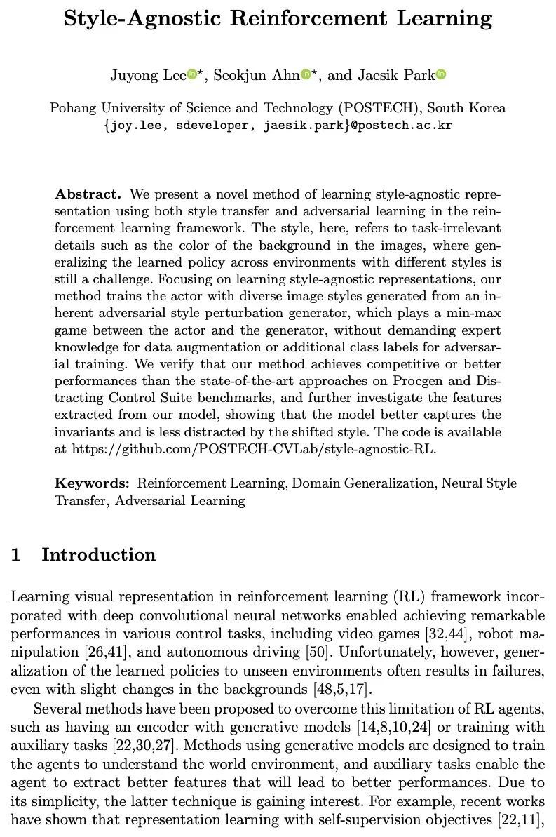 [CV] Style-Agnostic Reinforcement Learning