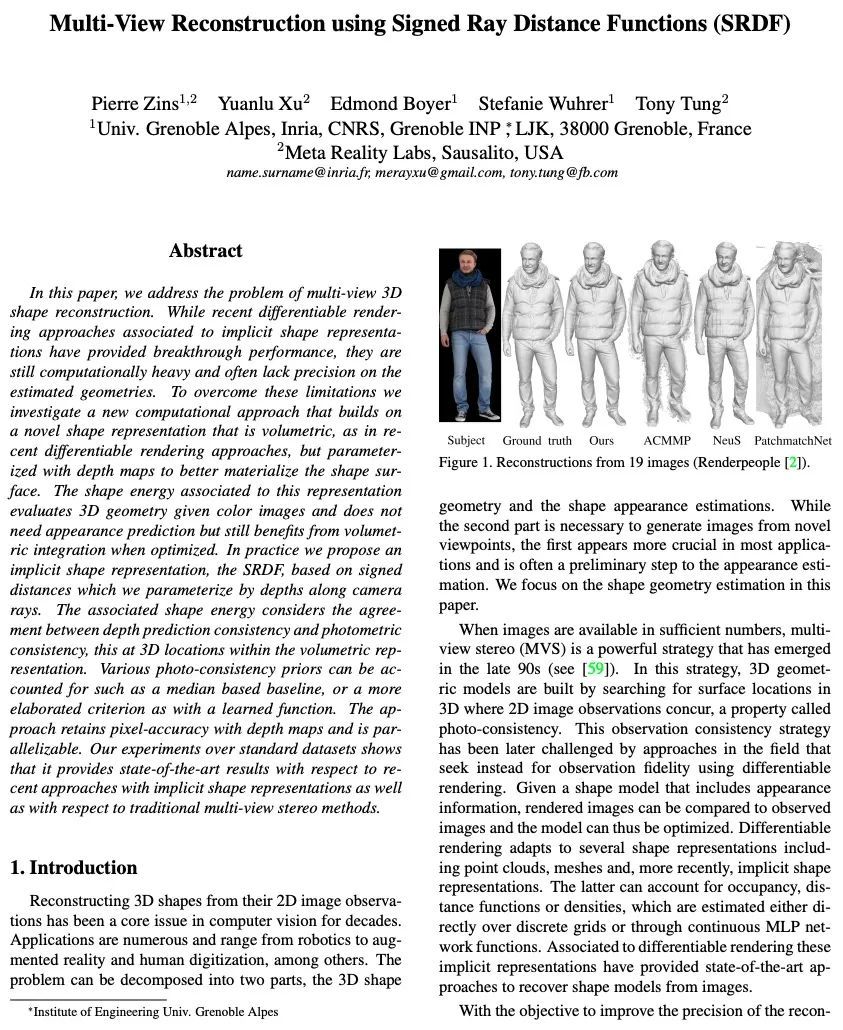[CV] Multi-View Reconstruction using Signed Ray Distance Functions (SRDF)