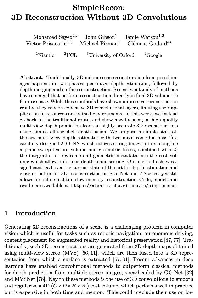 2、[CV] SimpleRecon: 3D Reconstruction Without 3D Convolutions