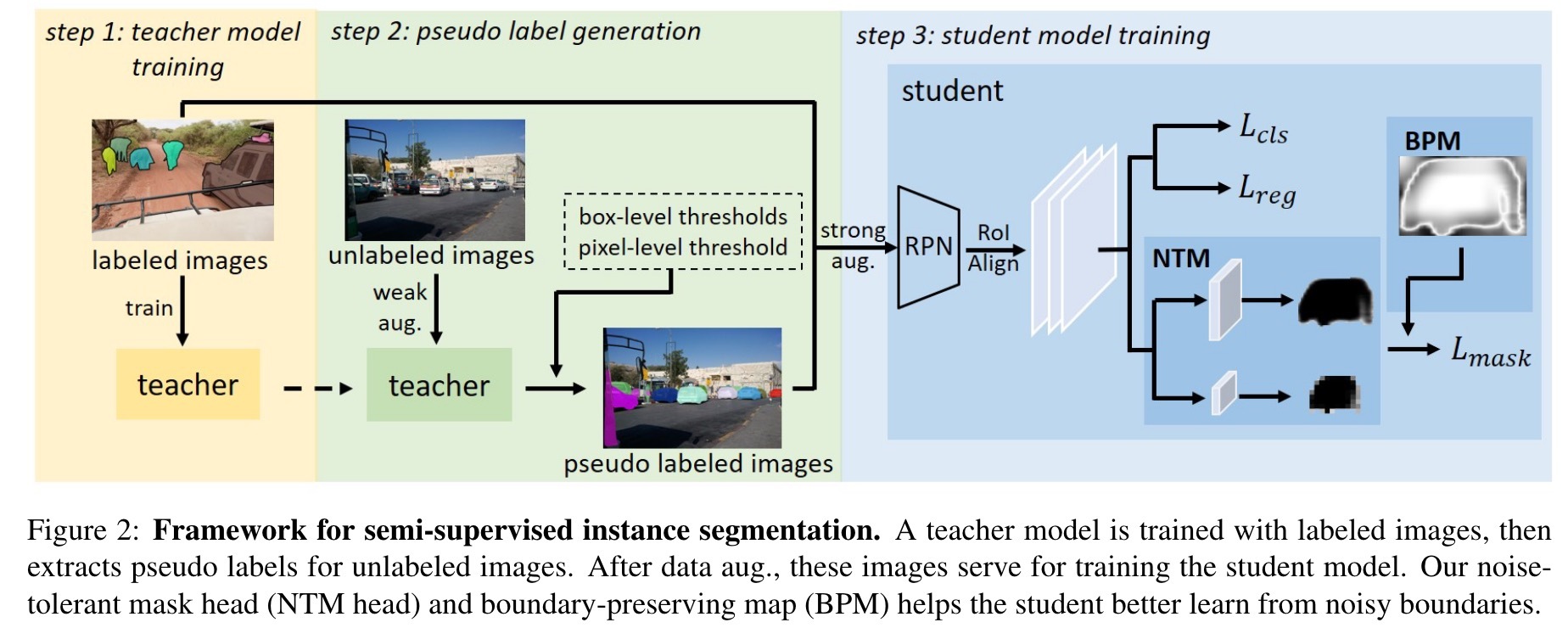 当前实例分割方法在很大程度上依赖于像素级注释的图像。获取此类通量的图像的巨大成本限制了数据集量表并限制了性能。在本文中,我们正式解决了半佩斯的实例分割,在该实例分段中,使用未标记的图像来提高性能。我们通过分配像素级伪标签来构建半监督实例分割的框架。在此框架下,我们指出,与伪标签相关的嘈杂边界是双边的。我们建议以统一的方式利用和抵抗它们:1)应对嘈杂边界的负面影响,我们通过利用低分辨率特征提出一个耐噪声的面具头。 2)为了增强积极影响,我们引入了一个保留边界的地图,以学习与边界相关区域内的详细信息。我们通过广泛的实验评估我们的方法。它的行为极为巨大,超过监督基线的利润率较大,城市景观超过6%,可可占7%,而BDD100k的基线为4.5%。在CityScapes上,我们的方法仅利用30%标记的图像来实现可比的性能。