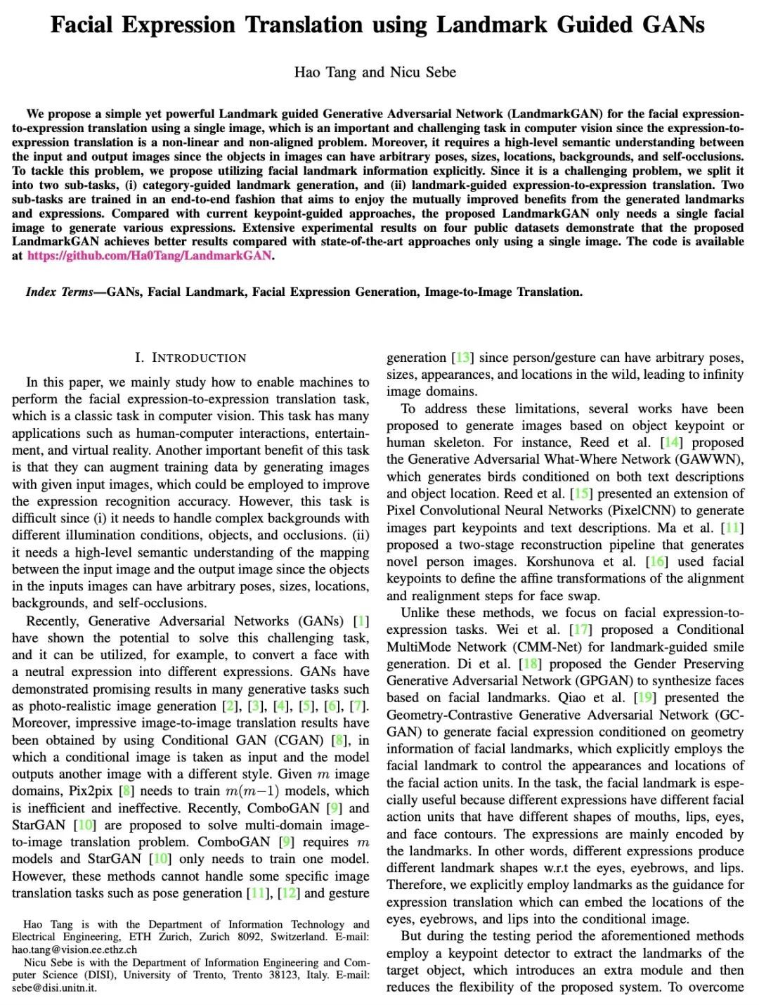 [CV] Facial Expression Translation using Landmark Guided GANs