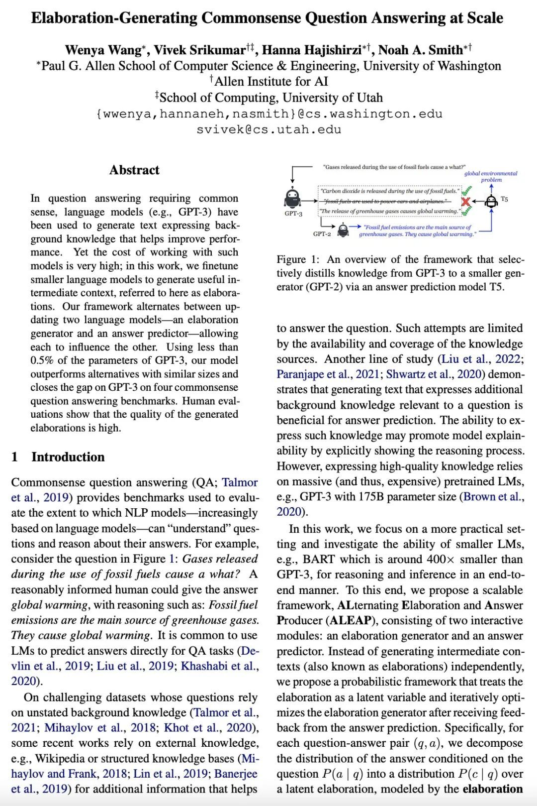 [CL] Elaboration-Generating Commonsense Question Answering at Scale