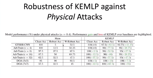 具体而言,针对不同的物理攻击、Lp 攻击、常见数据污染攻击,引入知识后的 KEMLP 框架均可以在 Clean Accuracy、Robust Accuracy、W-Robust Accuracy 等指标上取得一致的、大幅的性能提升(最高高达 82.5)。
