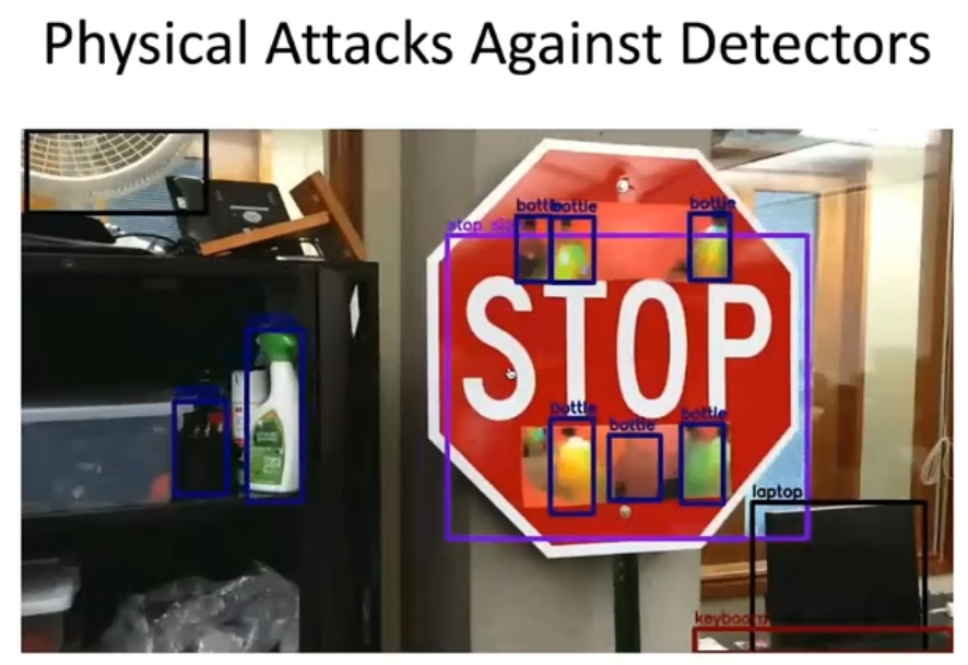 导读:在「STOP」路牌上贴图进行扰动,机器便无法在较远处正确识别路牌。这是李博团队展出在英国科技博物馆的工作,这一类工作关乎现实物理世界中的攻击,在自动驾驶、医疗,甚至日常网站上的恶意交易等领域均有应用。