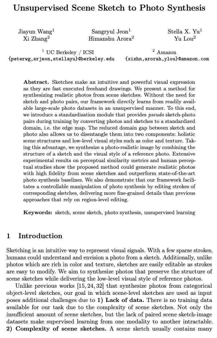 3、[CV] Unsupervised Scene Sketch to Photo Synthesis