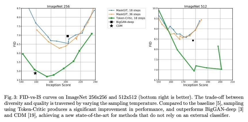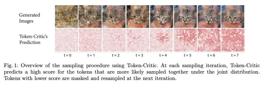 基于Token-Critic的改进掩码图像生成。非自回归生成Transformer最近展示了令人印象深刻的图像生成性能,并且比其自回归对应的采样速度快几个数量级。然而,从视觉标记的真实联合分布中进行最佳的平行采样仍然是一个公开的挑战。本文提出Token-Critic,一种指导非自回归生成式Transformer采样的辅助模型。给定一个经过掩码和重构的真实图像,TokenCritic模型被训练来区分哪些视觉Token属于原始图像,哪些是由生成Transformer采样得来的。在非自回归迭代采样过程中,Token-Critic被用来选择哪些Token要接受,哪些Token要拒绝并重新采样。与Token-Critic相结合,最先进的生成Transformer可大大改善其性能,在生成图像质量和多样性之间的权衡方面,在具有挑战性的类条件ImageNet生成方面优于最近的扩散模型和GAN。