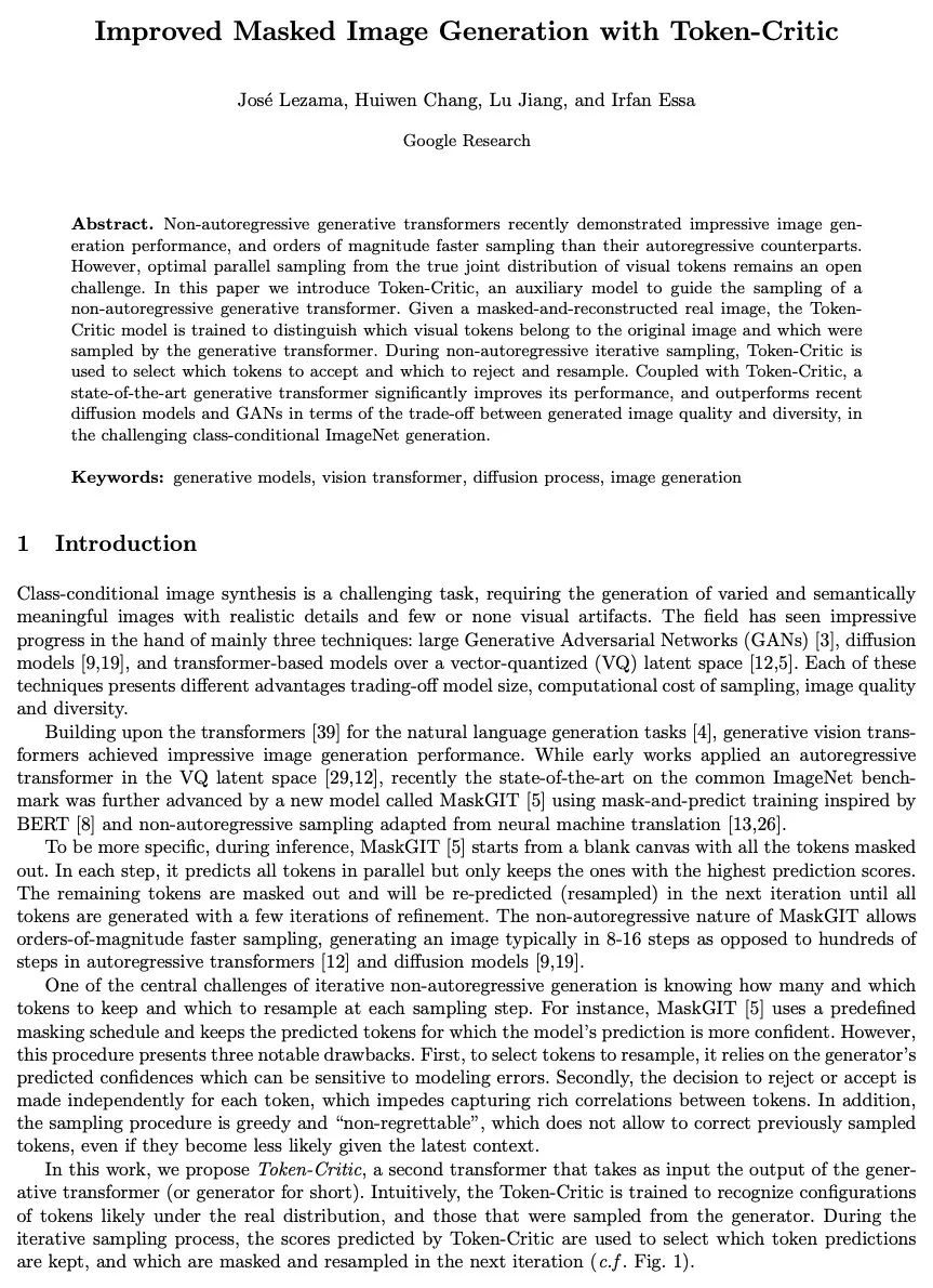 3、[CV] Improved Masked Image Generation with Token-Critic