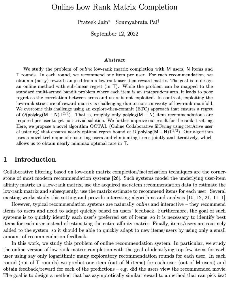 [LG] Online Low Rank Matrix Completion