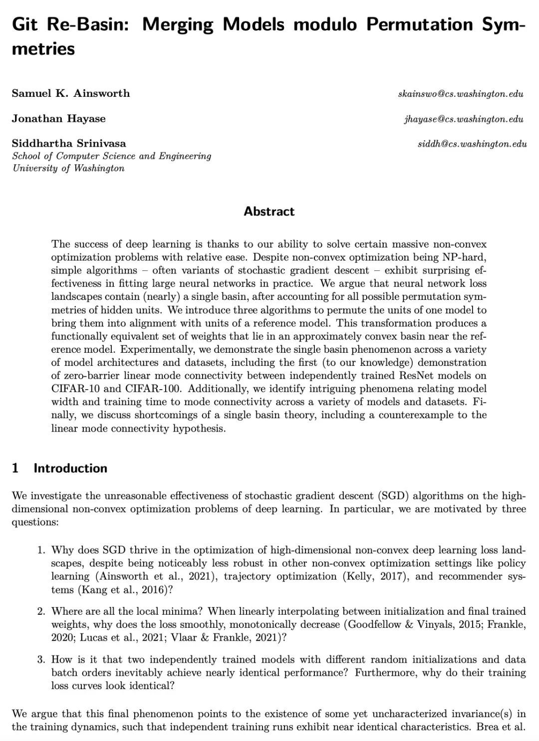 [LG] Git Re-Basin: Merging Models modulo Permutation Symmetries