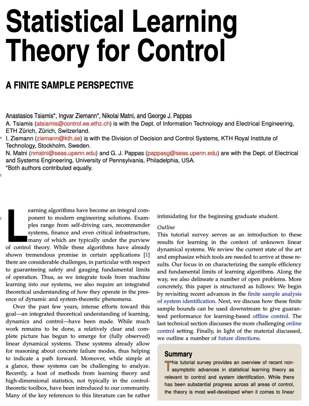 [LG] Statistical Learning Theory for Control: A Finite Sample Perspective