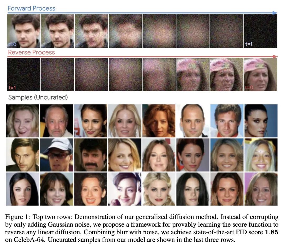 软扩散:通用破损的分数匹配。本文定义了一个更广泛的破损过程系列,推广了之前已知的扩散模型。为扭转这些一般的扩散,提出了一种新的目标,称为软分数匹配,可以证明学习任意线性破损过程的分数函数,并产生CelebA的最先进的结果。软分数匹配将退化过程纳入网络,并训练模型预测一个干净的图像,该图像在破损后与扩散的观察结果相匹配。所提目标是在适当的规则性条件下学习破损过程系列的似然梯度。进一步开发了一种原则性的方法来选择一般扩散过程的破损水平,以及一种称为动量采样器的新采样方法。对所提框架进行了评估,破损是高斯模糊和低量级加性噪声。所提方法在CelebA64上实现了最先进的FID得分1.85,超过了之前所有的线性扩散模型。我们还显示了与vanilla去噪扩散相比的重大计算优势。