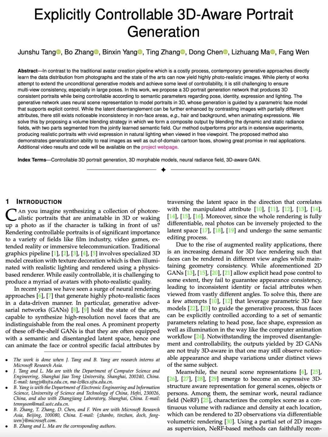 5、[CV] Explicitly Controllable 3D-Aware Portrait Generation