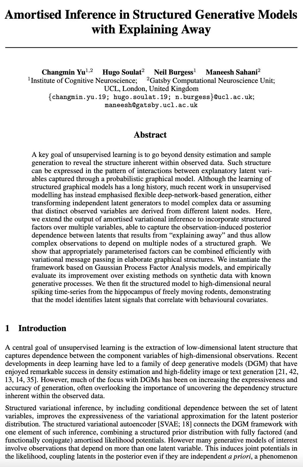 [LG] Amortised Inference in Structured Generative Models with Explaining Away
