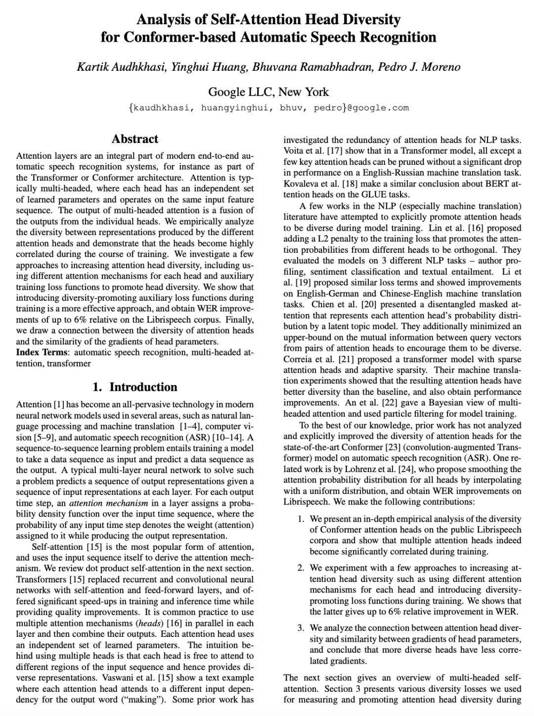 [CL] Analysis of Self-Attention Head Diversity for Conformer-based Automatic Speech Recognition