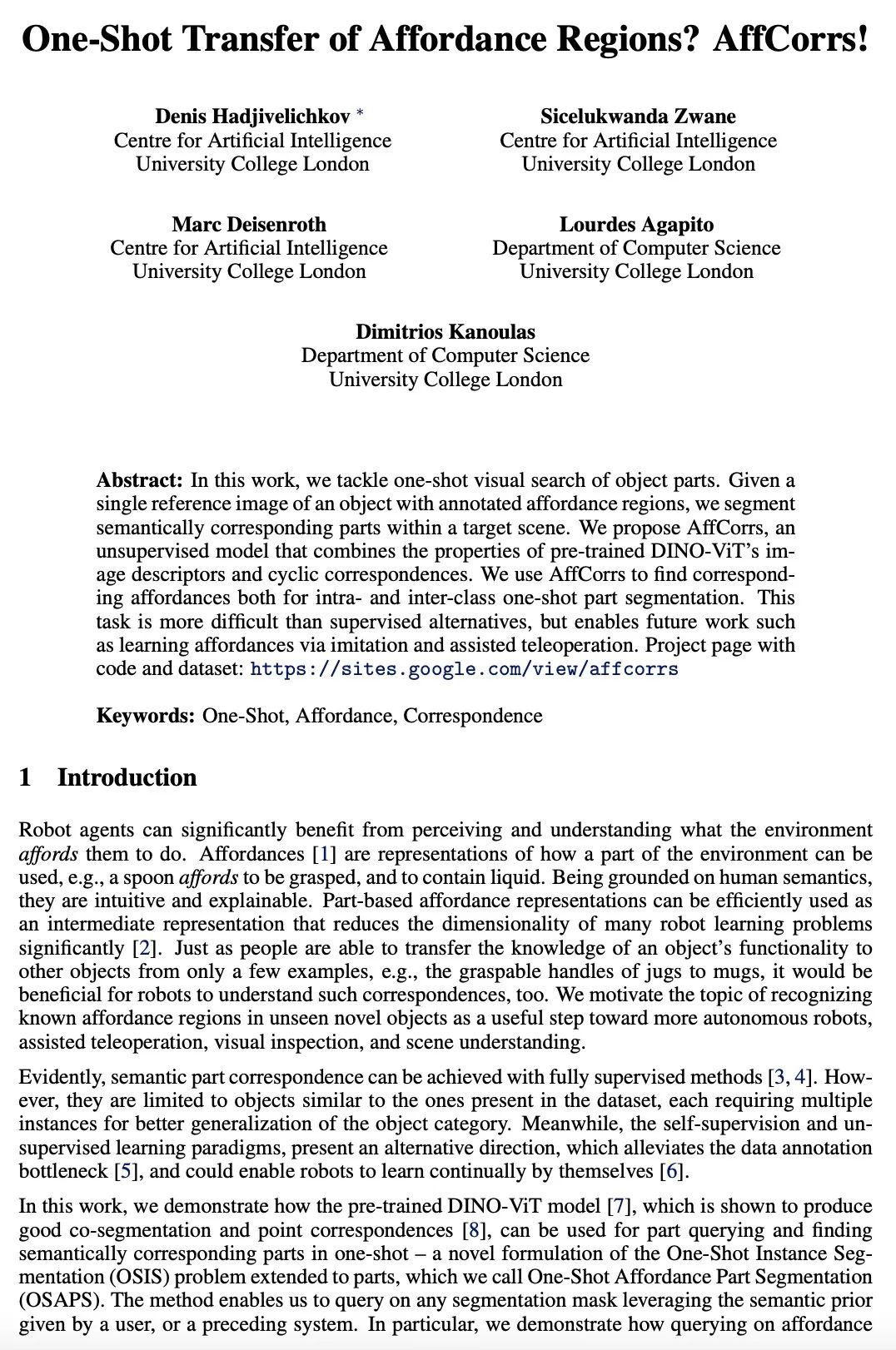 [CV] One-Shot Transfer of Affordance Regions? AffCorrs!