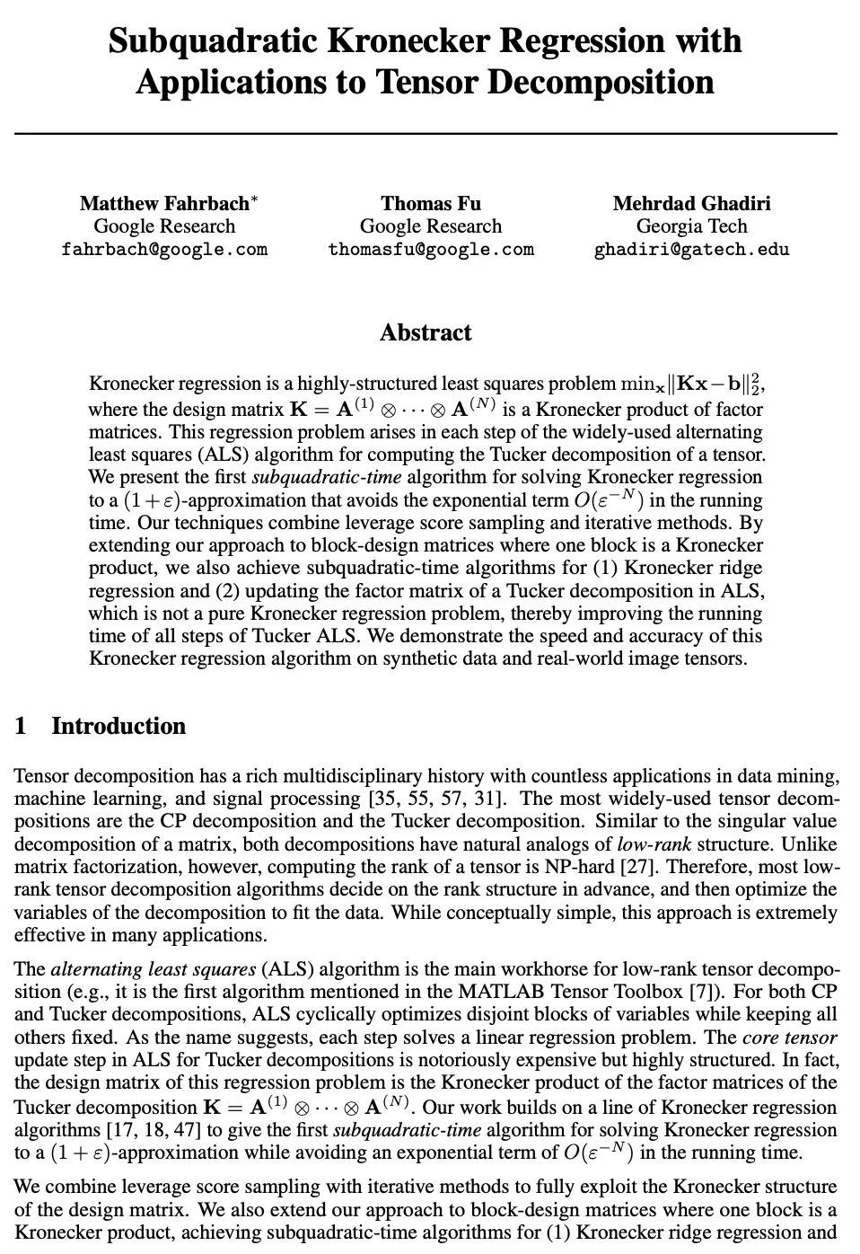 [LG] Subquadratic Kronecker Regression with Applications to Tensor Decomposition