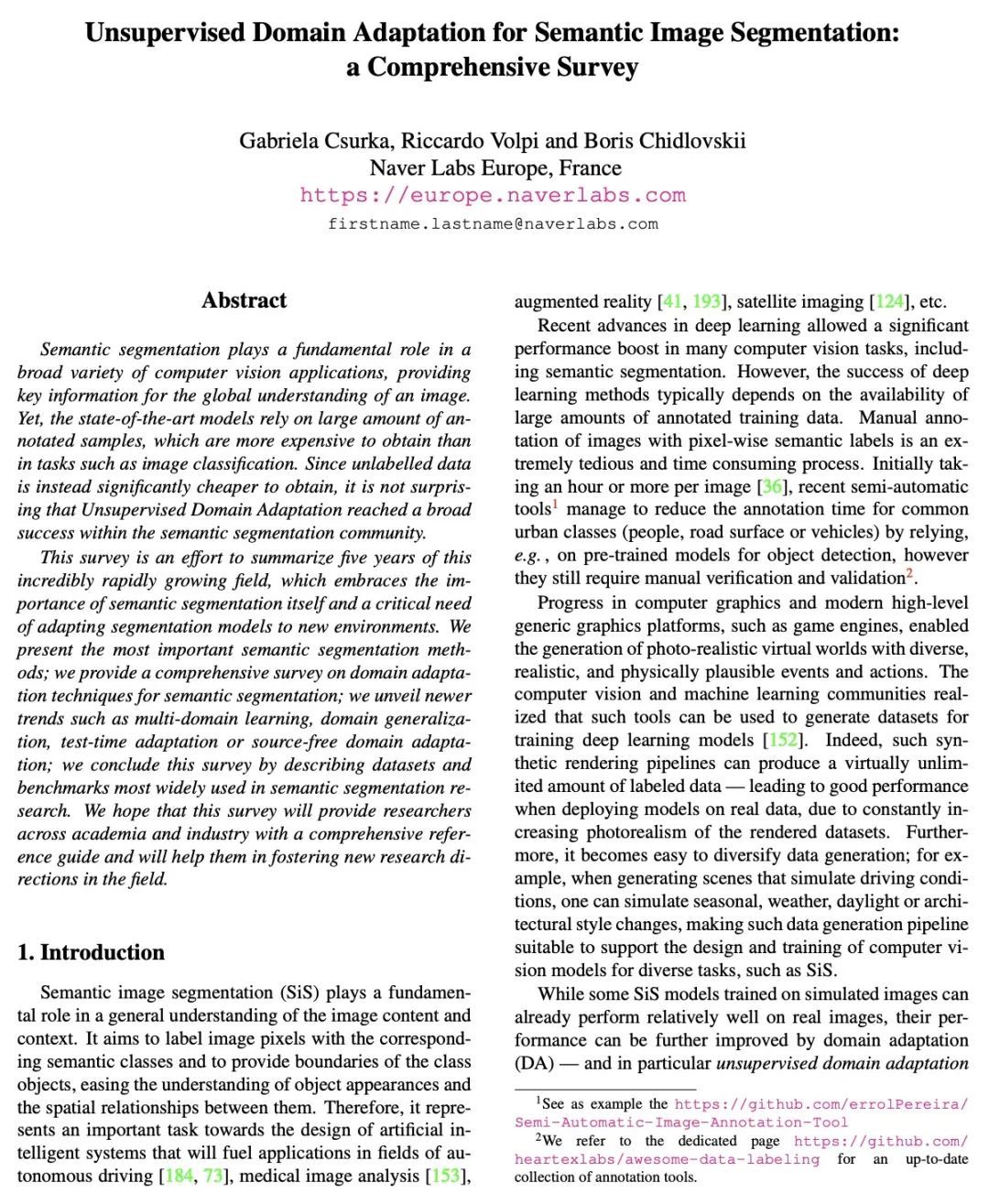 [CV] Unsupervised Domain Adaptation for Semantic Image Segmentation: a Comprehensive Survey