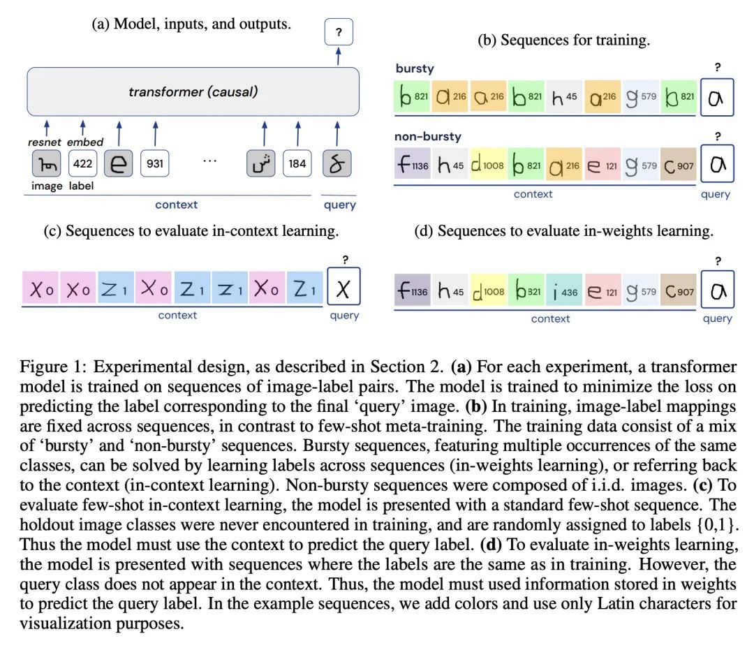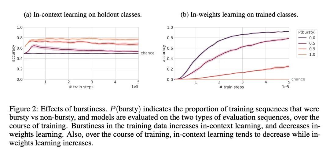 数据分布属性驱动Transformer的新兴语境学习。基于Transformer的大型模型能进行上下文少样本学习,而不需要进行显式的训练。这一观察提出了一个问题:训练方案的哪些方面导致了这种新兴行为?本文表明,这种行为是由训练数据本身的分布驱动的。当训练数据表现出特殊的分布属性,如突发性(item在集群中出现,而不是在一段时间内均匀分布)和有大量很少出现的类时,就会出现上下文学习。当项目的含义或解释是动态的而不是固定的,上下文学习也会更强烈地出现。这些属性以自然语言为例,但也是其他广泛领域的自然数据所固有的。它们也大大偏离了通常用于标准监督学习的统一的、i.i.d.训练分布。在最初的实验中,本文发现上下文学习与更传统的基于权重的学习进行了权衡,模型无法同时实现两者。然而,我后来的实验中发现,当模型按照倾斜的Zipfian分布训练时,这两种学习模式可以在一个模型中共存——这是包括语言在内的自然数据的另一个共同属性。在进一步的实验中,本文发现自然数据分布只能在Transformer中引起语境学习,而不能在循环模型中引起。总而言之,本文发现表明了Transformer架构是如何与训练数据的特定属性共同作用,驱动大型语言模型耐人寻味的上下文学习行为的,以及未来的工作如何鼓励在语言以外的领域进行上下文学习和权重学习。