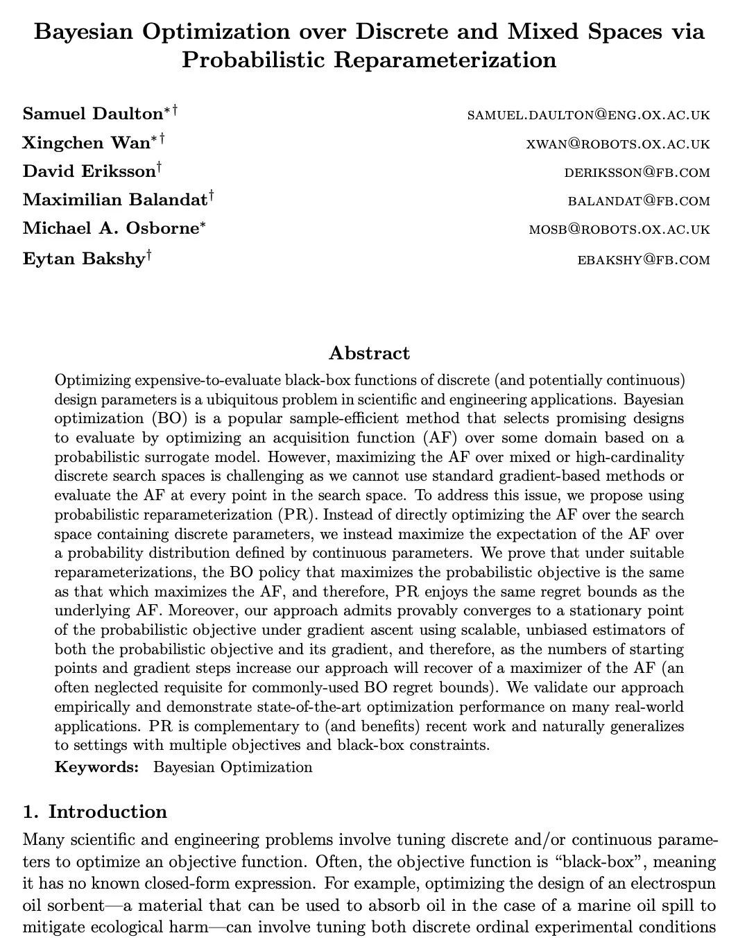 3、[LG] Bayesian Optimization over Discrete and Mixed Spaces via Probabilistic Reparameterization