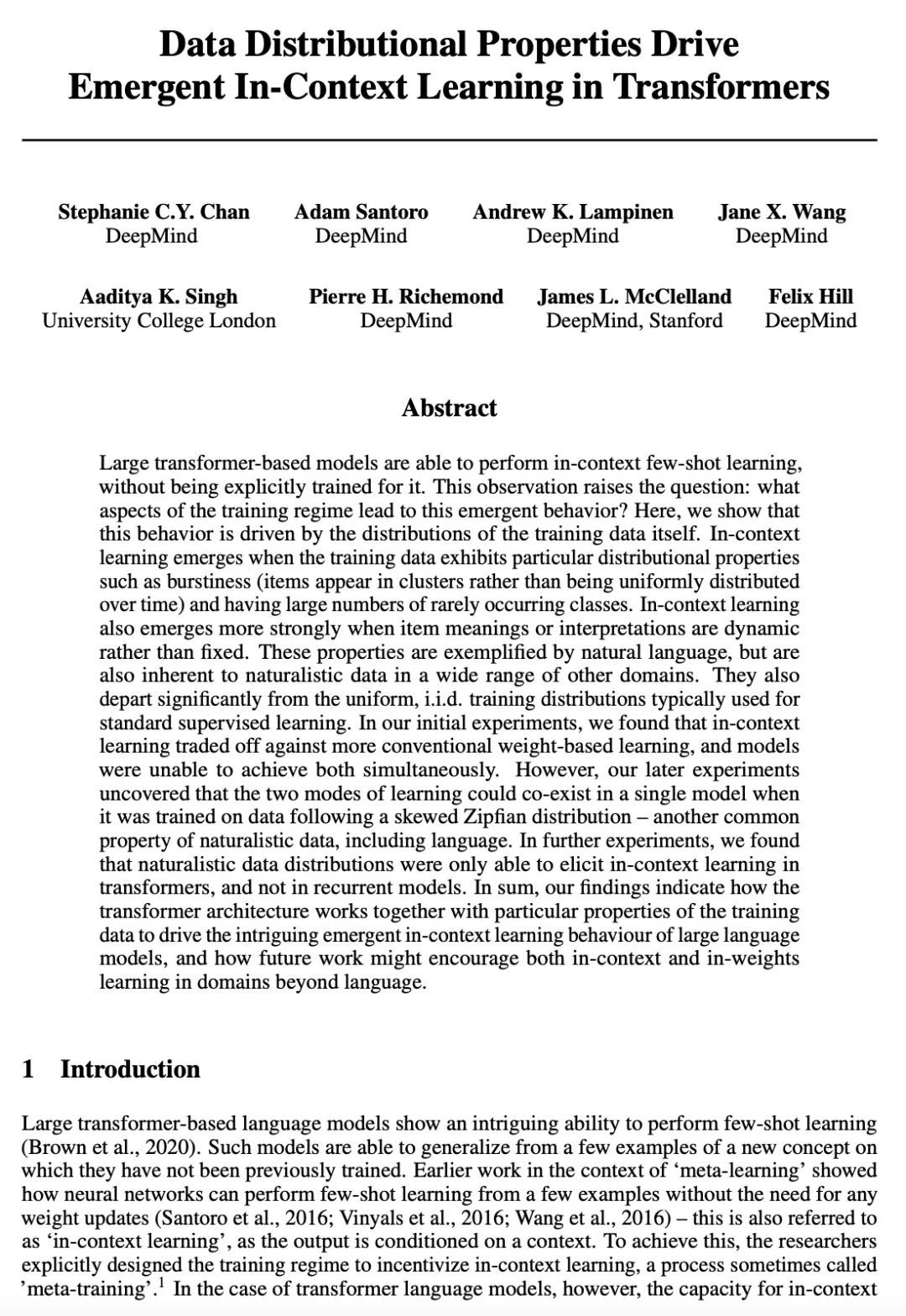 S C.Y. Chan, A Santoro, A K. Lampinen, J X. Wang, A Singh, P H. Richemond, J McClelland, F Hill