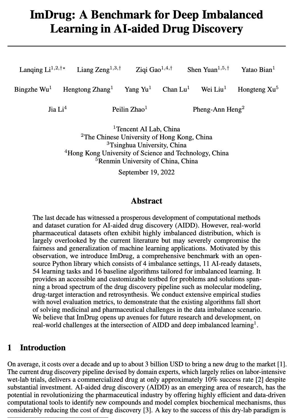 [LG] ImDrug: A Benchmark for Deep Imbalanced Learning in AI-aided Drug Discovery