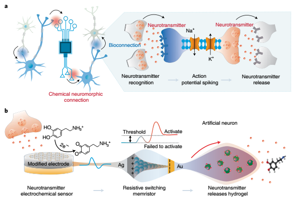 充当“化学信桥”的人工神经元