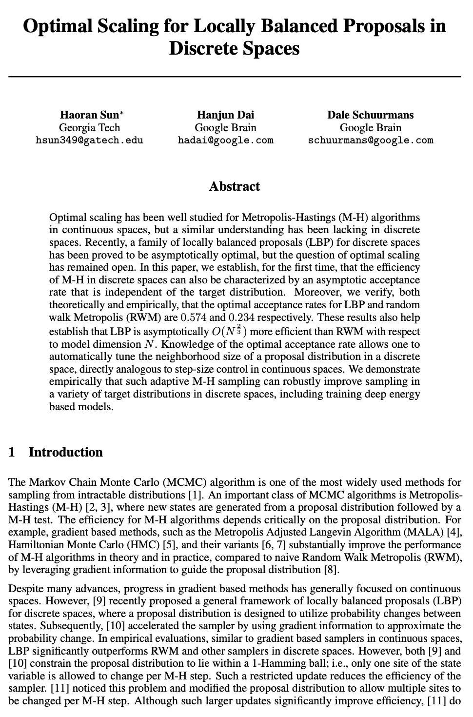 [LG] Optimal Scaling for Locally Balanced Proposals in Discrete Spaces