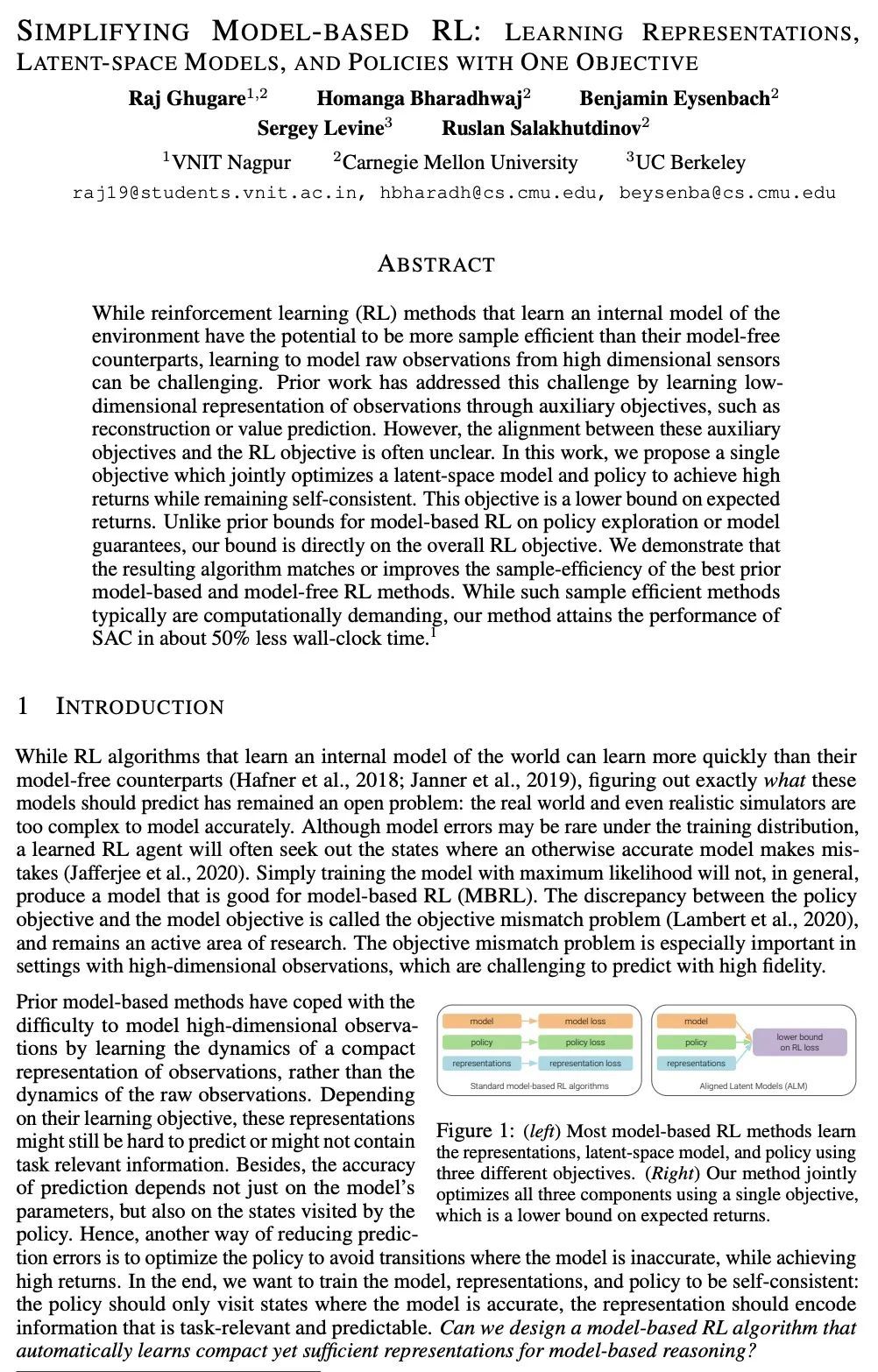 4、[LG] Simplifying Model-based RL: Learning Representations, Latent-space Models, and Policies with One Objective
